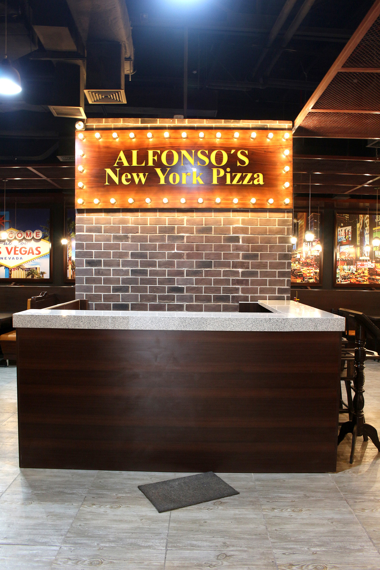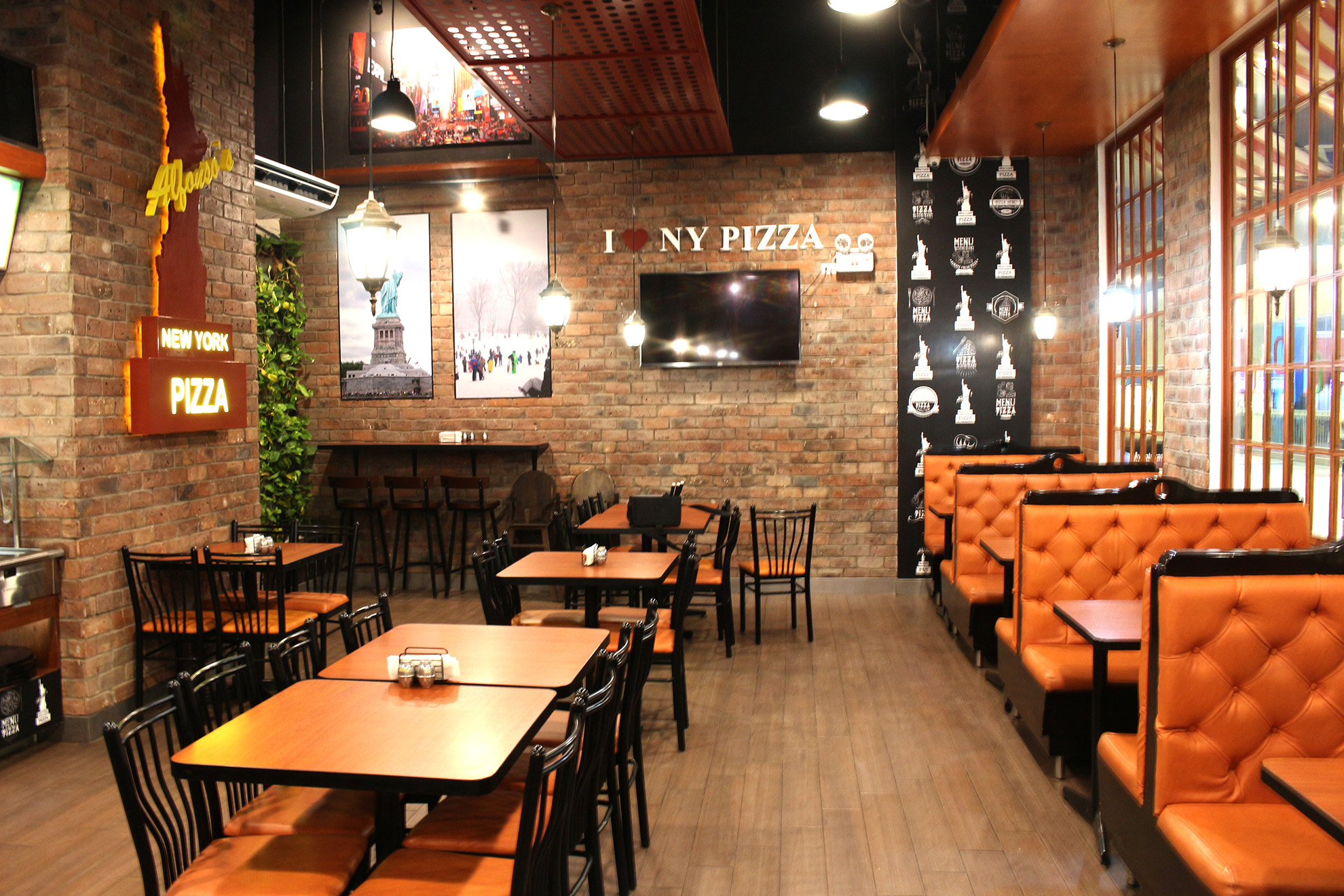 El diseño de esta pizzería combina elementos tradicionales y contemporáneos para crear una experiencia acogedora y auténtica. La utilización de materiales clásicos como el ladrillo y la madera, junto con elementos modernos como los gráficos en las ventanas y la iluminación estratégica, logra un balance entre lo nostálgico y lo actual. Este enfoque no solo evoca la sensación de una pizzería de Nueva York, sino que también establece una identidad única que atrae tanto a locales como a visitantes.